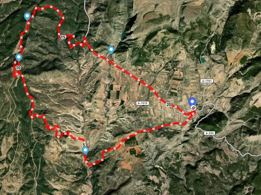 Esta ruta circular de 20,5 km recorre algunos de los entornos más tranquilos y naturales de Rubielos de Mora. Tras salir del casco histórico, el itinerario se adentra en pistas forestales rodeadas de pino y sabina, ascendiendo progresivamente hacia el Alto Matanzas, donde se obtienen vistas amplias del altiplano.