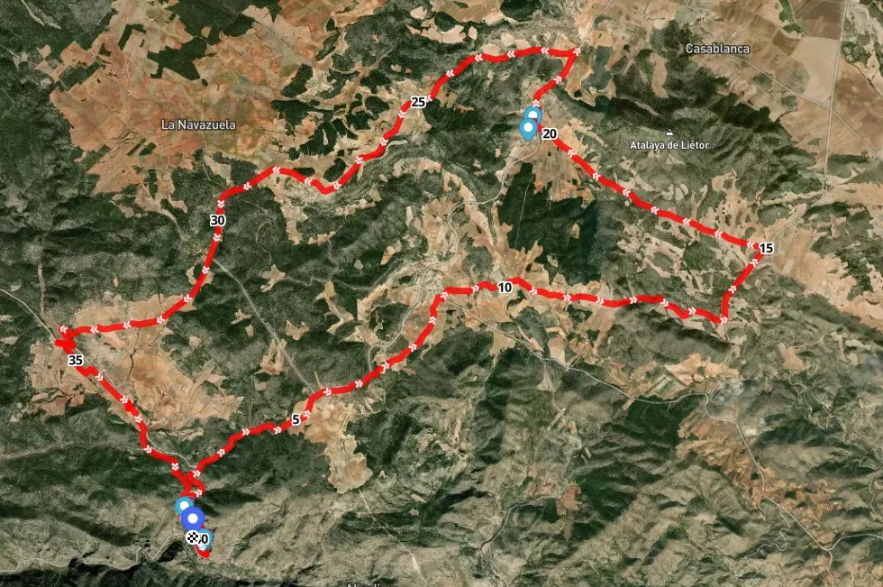 Ruta circular exigente de unos 41 km y +870 m de desnivel que recorre algunos de los paisajes más amplios y auténticos de la Sierra del Segura. Desde Ayna, el itinerario asciende progresivamente hacia Sarguilla y Villarejo, zonas de alto valor agrícola y panorámico, para continuar hacia Pozo Sancho y los campos abiertos del Cortijo de la Hiruela. La vuelta se realiza por la pedanía del Morisco, con vistas abiertas al valle y rodeada de monte mediterráneo. Una ruta ideal para quienes buscan un recorrido variado, con pistas, entorno rural tradicional y panorámicas constantes sobre la llamada “Suiza Manchega”.