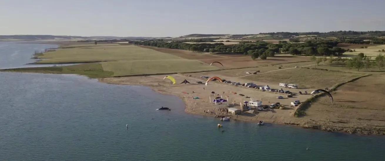 El itinerario discurre por caminos rurales amplios y tranquilos, con suaves ondulaciones y vistas abiertas al embalse. La combinación de agua, horizonte y vegetación mediterránea convierte la experiencia en un paseo lleno de luz y amplitud.