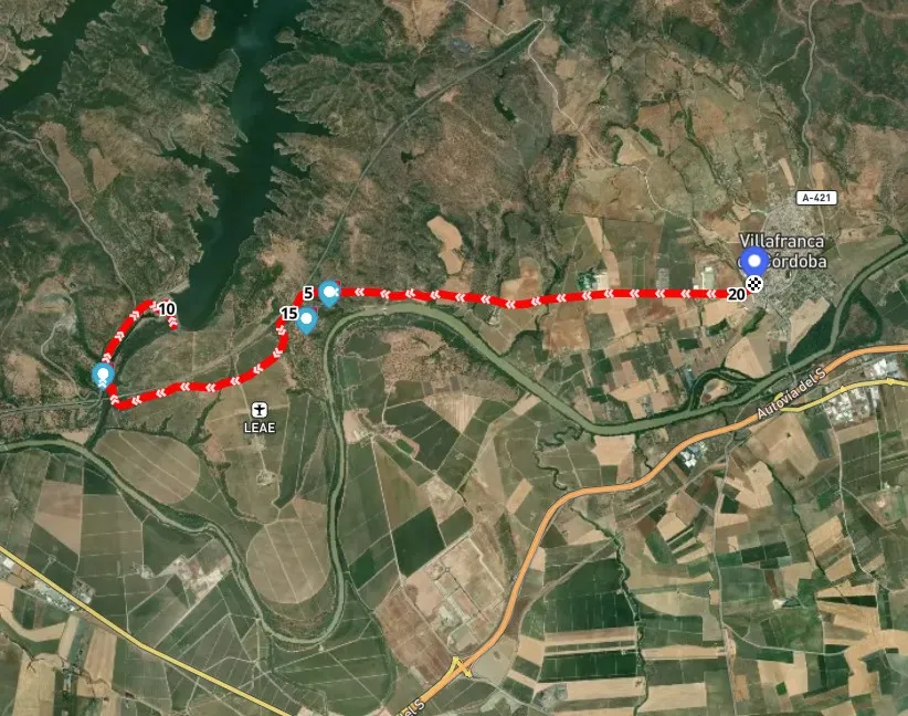 Esta ruta de ida y vuelta recorre la campiña cordobesa desde Villafranca de Córdoba hasta el embalse de San Rafael de Navallana, siguiendo caminos rurales y pistas agrícolas que discurren por el entorno fértil del río Guadamellato.