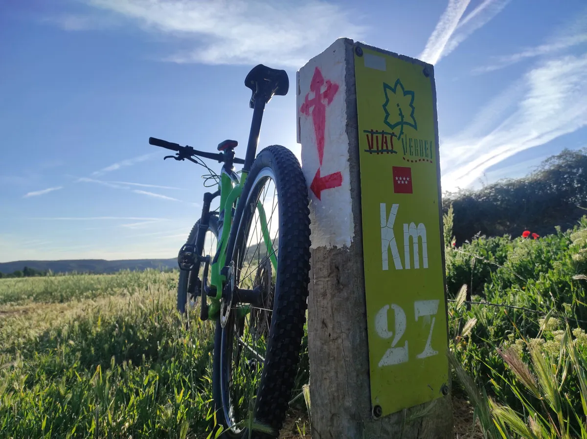 La ruta sale del entorno del puente medieval del río Tajuña, en las afueras de Carabaña. En el cruce hay señales de las rutas locales de cicloturismo, de la Vía Verde del Tajuña y del itinerario de CiclaMadrid. El carril bici del antiguo tren militar de los 40 Días sale de la fértil vega del río Tajuña poco después y sube por las trincheras ferroviarias excavadas durante la construcción de la vía, en un terreno de colinas esteparias pobladas de espartos y cárcavas de yesos relucientes. El contraste entre la vega y el páramo es impactante. En las canteras de Los Pedernales sale un desvío hacia la derecha que cruza la carretera de Estremera y sube hacia Valdaracete por la ermita de la Virgen de la Pera (s. XIX), un panorámico mirador de la población.