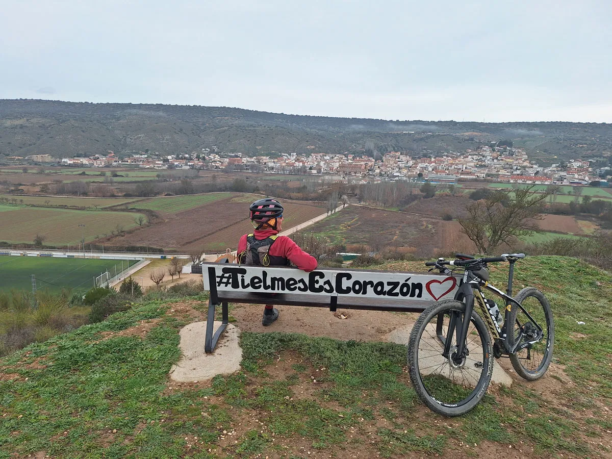 La ruta sale por el puente de piedra del Tajuña y en el cruce de la ermita de San Isidro comienza un camino rural que sube al mirador del banco “Tielmes es corazón”, con una panorámica extraordinaria del conjunto urbano en la ladera del valle. La Vía Verde pasa por el acogedor paraje de la ermita de los Santos Niños y en el límite municipal se encuentra el Azud de Vaciabotas, conocido como la “cascada” del Tajuña.